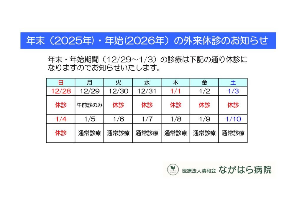 年末年始の外来診療休診のお知らせ